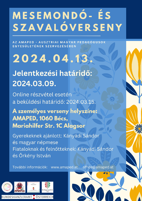 Az Ausztriai Magyar Pedagógusok Egyesülete (AMAPED) 2024-ben is megrendezi a hagyományos mesemondó- és szavalóversenyét, amelyre szeretettel várják a romániai magyar gyerekek, fiatalok és felnőttek bekapcsolódását is.